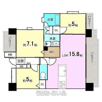 間取り: 3LDK(角部屋)